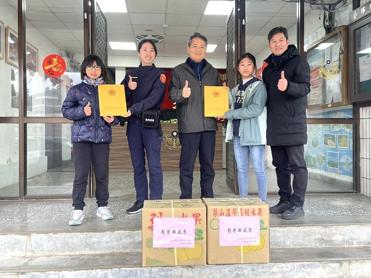 介壽、中正師生致贈縣警局感謝狀及水果